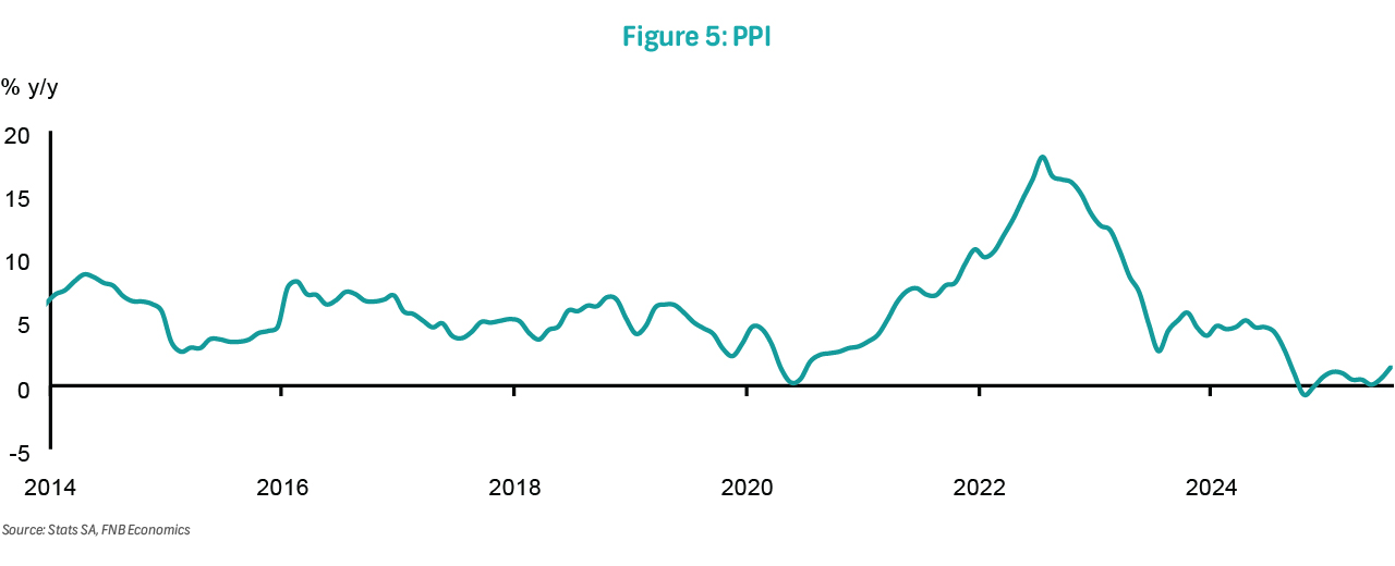 Producer inflation accelerated to 1.5% y/y in July from 0.6% in June. On a monthly basis, prices rose 0.7%, driven mainly by increases in petrol and diesel, transport equipment, and non-metallic minerals. Food prices, however, declined month-on- month, helping to contain overall pressure. Annual food inflation eased slightly to 3.5% in July from 3.6% in June, though meat inflation remained in the double digits at 18.2% (from 20.6%). Other food products inflation was 2.4%, while grain mill and animal feed recorded deflation. Although petrol and diesel prices are still falling, the pace of decline has slowed. Overall, producer inflation has remained subdued, averaging 0.7% year-to- date. We forecast an average of around 1.2% for this year, rising to about 3% in 2026.