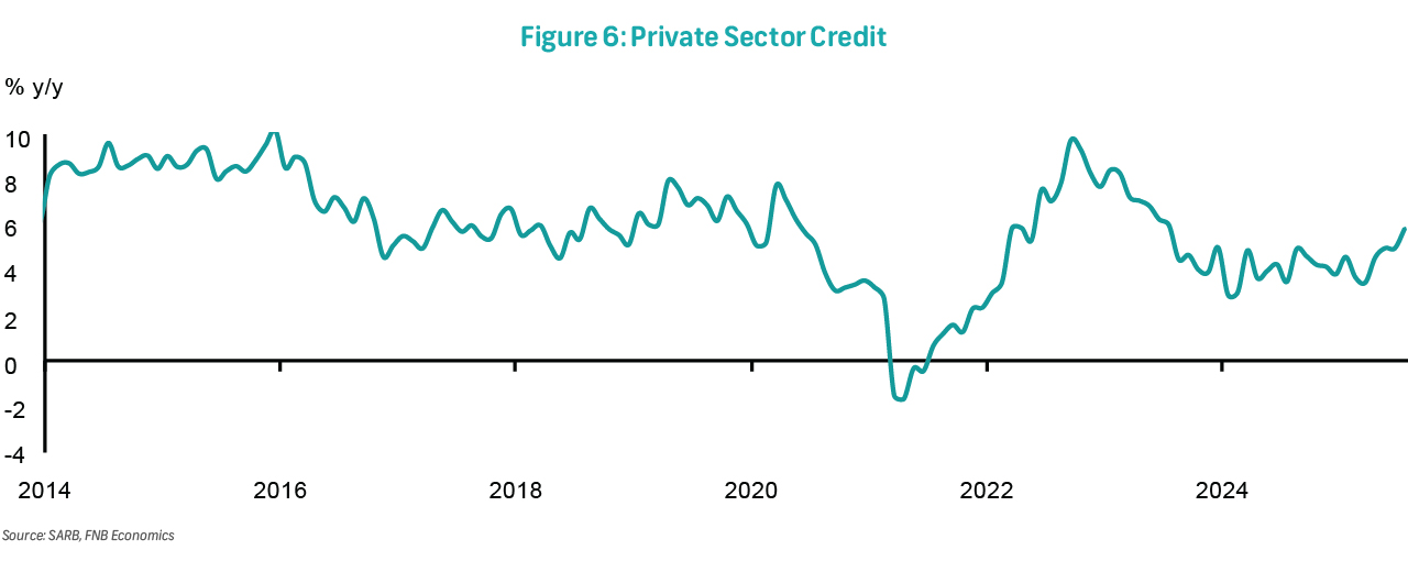 Private Sector Credit Extension (PSCE) growth accelerated to 5.8% y/y in July, up from 5.0% y/y in June. Household credit growth remained subdued at 3.0%, slightly lower than the 3.1% recorded previously. In contrast, corporate credit continued to outperform, rising to 8.3% from 6.6% in the prior month. Within the corporate segment, loans and advances increased to 9.9% from 8.1%, driven by stronger growth in general loans (12.7% vs. 9.1%) and vehicle asset finance (8.1% vs. 5.7%), while mortgages held steady at 6.8%. In the household segment, car finance edged up to 7.2% from 6.8%, whereas mortgage growth slowed to 2.0% from 2.2%. Aside from credit cards, which maintained a solid growth rate of 7.0%, unsecured credit extended to households remains weak, reflecting persistently high default rates.