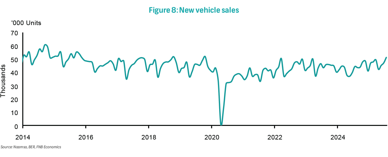 New vehicle sales data for August will also be released on Monday. In July, total new vehicle sales rose 15.6% y/y to 51 383 units. This was underpinned by a 20.1% increase in passenger car sales to 36 248 units, marking thirteen consecutive months of growth. Commercial vehicle sales expanded by 6.0%, supported by gains across light, medium, and heavy categories, representing the fourth straight month of growth. The strong performance in new vehicle sales continues to be supported by a low and stable inflation environment, recent interest rate reductions, and resilient demand for entry-level and affordable brands.