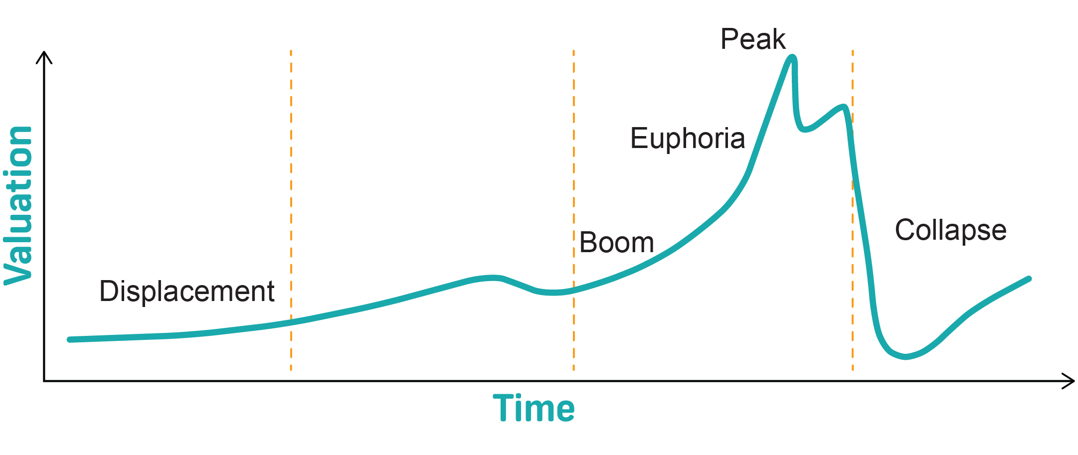 • Displacement: Bubbles begin when investors become excited about new developments, innovations or opportunities, such as technological advancements, regulatory changes or shifts in monetary policy, that promise high returns.